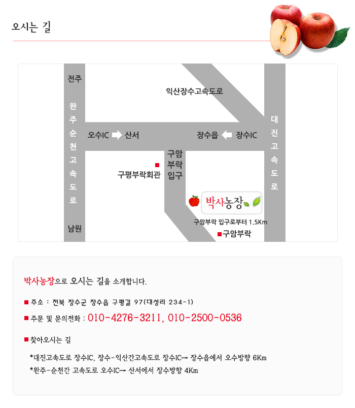전북 장수군 장수읍 구평길 97(대성리 234-1) l H.P : 010-4276-3211 l TEL : 063-353-5455